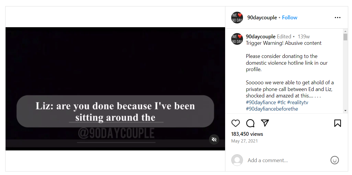 In May 2021, a leaked phone call between Big Ed and Liz circulated online. It revealed Big Ed had allegedly been verbally and mentally abusive towards Liz. The audio had Big Ed yelling at Liz for giving her co-worker a ride home (as shared by @90daycouple.) He repeatedly used abusive language, called Liz stupid, and refused to give her a chance to explain herself. Big Ed kept making Liz feel like she had committed a crime while she desperately begged him to let her explain the situation. During the call, Liz even mentioned that Big Ed had approved her request when she asked for permission.