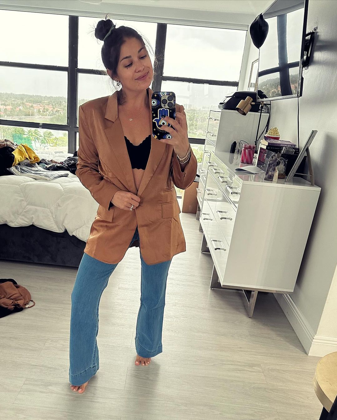 Loren posed in a long brown jacket with a black corset top underneath and a pair of blue jeans. She took a mirror selfie. However, fans started lashing out at the celebrity with negative comments.