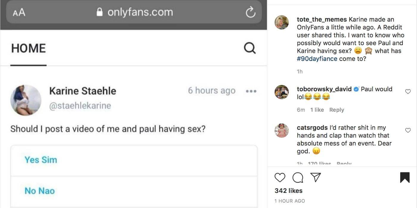 More than 800 people had voted yes in the poll, revealing the kind of demand her naughty content had among her fans. Several 90 Day Fiancé cast members reacted to Karine’s obnoxious request. While fans commented, “Hell to the no!!,” and “Wtf whyyyyyyyyyyy,” David Toborowsky wrote, “Paul would lol” with several laughing emojis on a now-deleted post by @tote_the_memes.